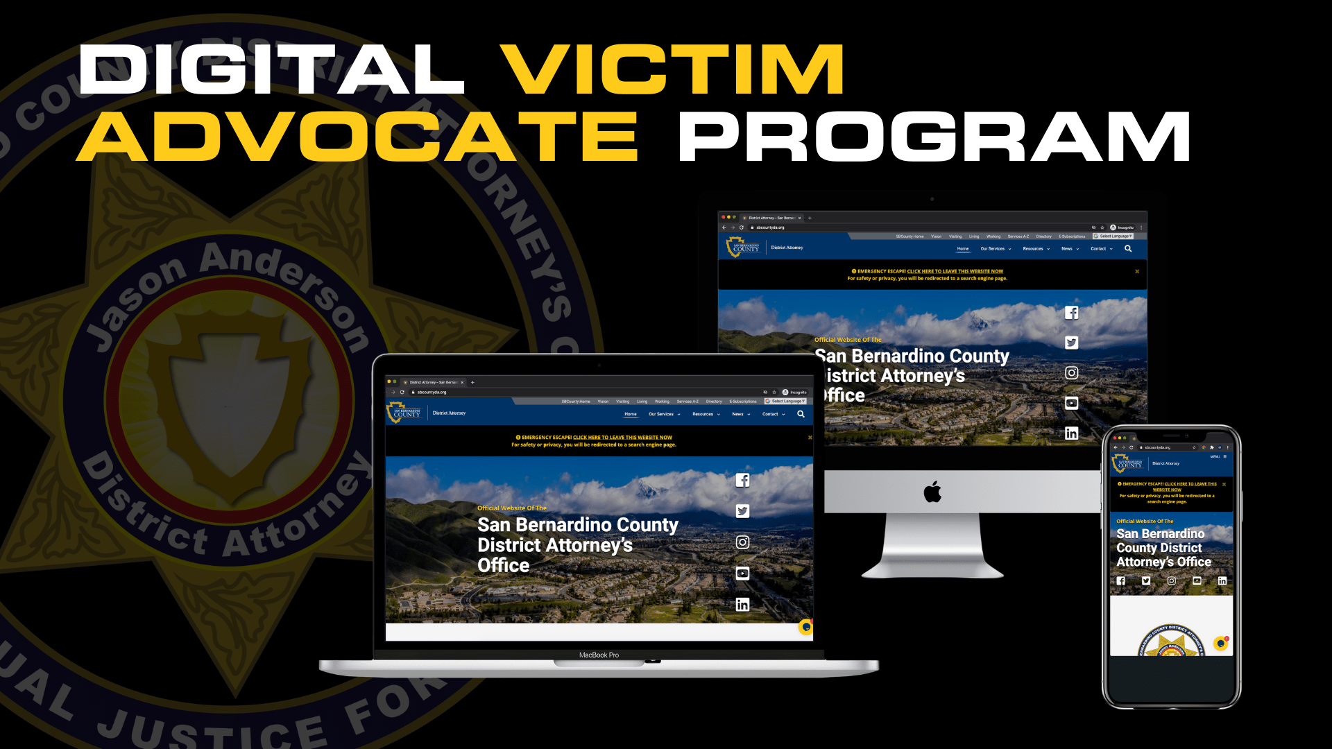 The San Bernardino County District Attorney’s Office is the first in California to offer access to a victim advocate through website chat, social media, and soon-to-be video.
