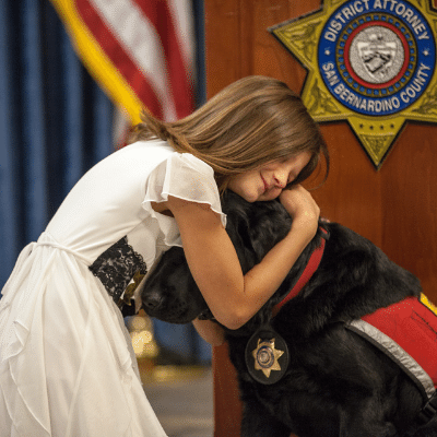 In 2015, the San Bernardino County District Attorney’s Office swore in two new members creating the Special Victims K-9 Unit. Lupe and Dozer are the first courthouse facility dogs for the DA’s Office. They are both English Labradors. In 2020, the K9 unit welcomed Kirby, a 3 yr old Labradoodle. All three dogs were highly trained from Assistance Dogs of the West located in Santa Fe, New Mexico.